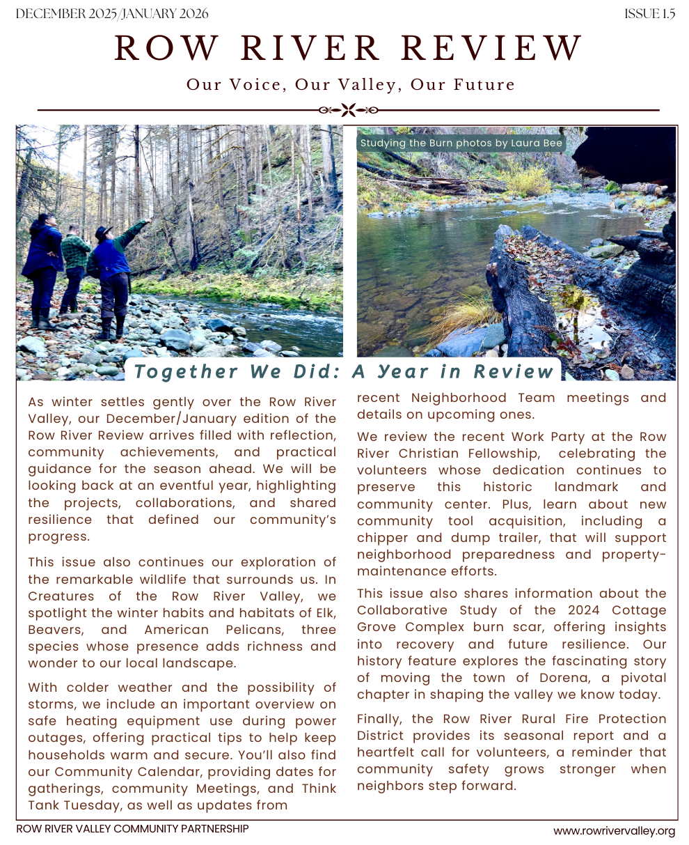 Our Valley, Our Voice, Our Future. Welcome to the December/January Edition of the Row River Review. Together we welcome Winter, and celebrate a Year in Review. More than a [...]
